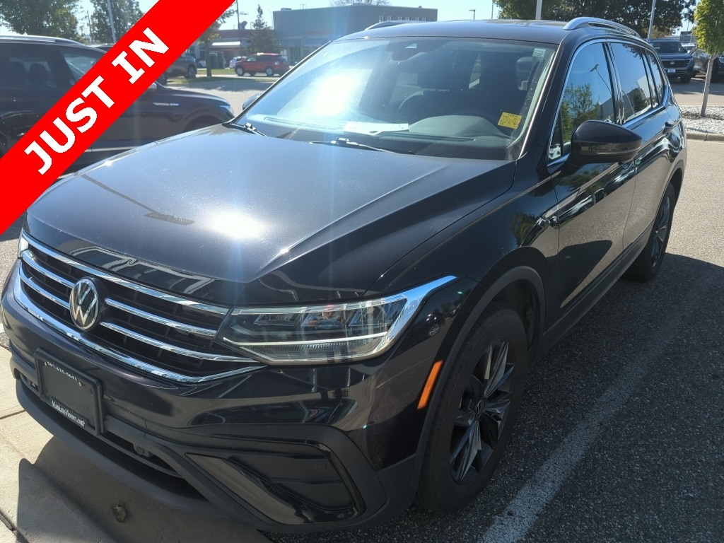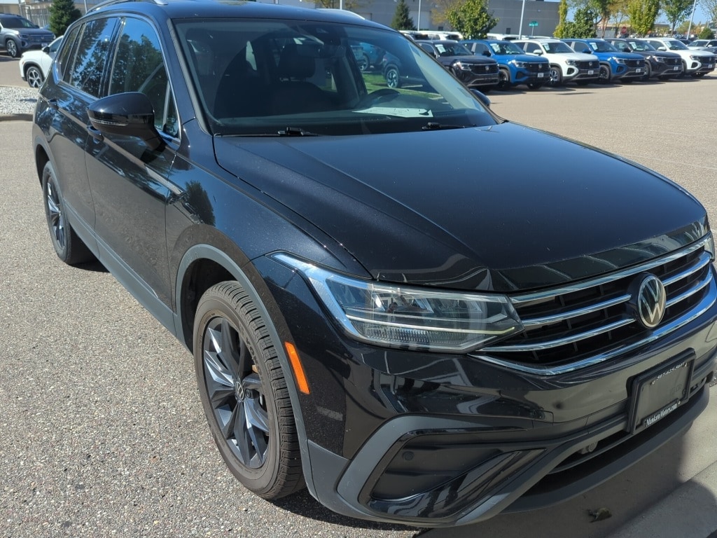 Certified. Deep Black Pearl 2023 Volkswagen Tiguan 2.0T SE AWD 8-Speed Automatic with Tiptronic 2.0L TSI DOHC Tiguan 2.0T SE, 4D Sport Utility, 2.0L TSI DOHC, 8-Speed Automatic with Tiptronic, AWD, Deep Black Pearl, Titan Black w/Perforated V-Tex Leatherette Seating Surfaces, AM/FM radio: SiriusXM with 360L, Auto-dimming Rear-View mirror, Credit - Power Rear Liftgate Removed, Exterior Parking Camera Rear, Front dual zone A/C, Heated front seats, Perforated V-Tex Leatherette Seating Surfaces, Power driver seat, Rain sensing wipers, Wheels: 18" Dark Graphite Painted 10-Spoke Alloy.