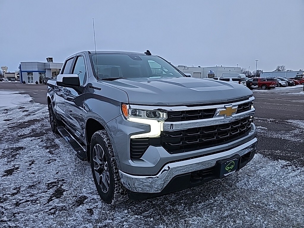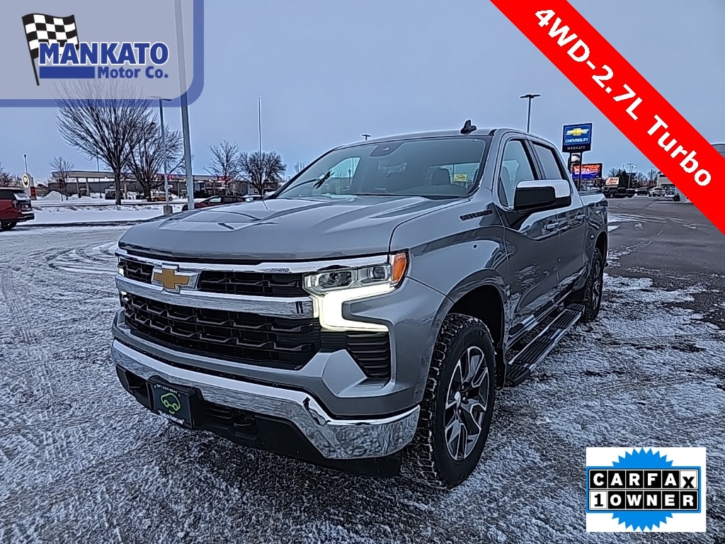 Sterling Gray Metallic 2023 Chevrolet Silverado 1500 LT LT1 4WD 8-Speed Automatic 2.7L Turbo **NEW TIRES**, Silverado 1500 LT LT1, 4D Crew Cab, 2.7L Turbo, 8-Speed Automatic, 4WD, Sterling Gray Metallic, Jet Black w/Cloth Seat Trim, 10-Way Power Driver Seat w/Lumbar, 12.3" Multicolor Reconfigurable Digital Display, 120-Volt Bed Mounted Power Outlet, 120-Volt Instrument Panel Power Outlet, All-Star Edition, Apple CarPlay/Android Auto, Auto-Locking Rear Differential, Black Name Plates (LPO), Bluetooth® For Phone, Chevrolet Connected Access Capable, Chevytec Spray-On Black Bedliner, Chrome Mirror Caps, Color-Keyed Carpeting Floor Covering, Compass, Convenience Package, Dark Essentials Package (LPO), Deep-Tinted Glass, Dual Rear USB Ports (Charge Only), Dual-Zone Automatic Climate Control, Electrical Steering Column Lock, Electronic Cruise Control, EZ Lift Power Lock & Release Tailgate, Front Frame-Mounted Black Recovery Hooks, Front Rubberized Vinyl Floor Mats, HD Rear Vision Camera, Heated Driver & Front Outboard Passenger Seats, Heated Power-Adjustable Outside Mirrors, Heated Steering Wheel, Hitch Guidance, Inside Rear-View Mirror w/Tilt, Keyless Open & Start, LED Cargo Area Lighting, OnStar & Chevrolet Connected Services Capable, Power Front Windows w/Driver Express Up/Down, Power Front Windows w/Passenger Express Down, Power Rear Windows w/Express Down, Preferred Equipment Group 1LT, Protection Package, Rear 60/40 Folding Bench Seat (Folds Up), Rear Rubberized-Vinyl Floor Mats, Rear Wheelhouse Liners, SiriusXM w/360L, Standard Tailgate, Steering Wheel Audio Controls, Trailering Package, Wheels: 20" x 9" Painted Aluminum, Wi-Fi Hot Spot Capable, Wireless Phone Projection, Wrapped Steering Wheel.