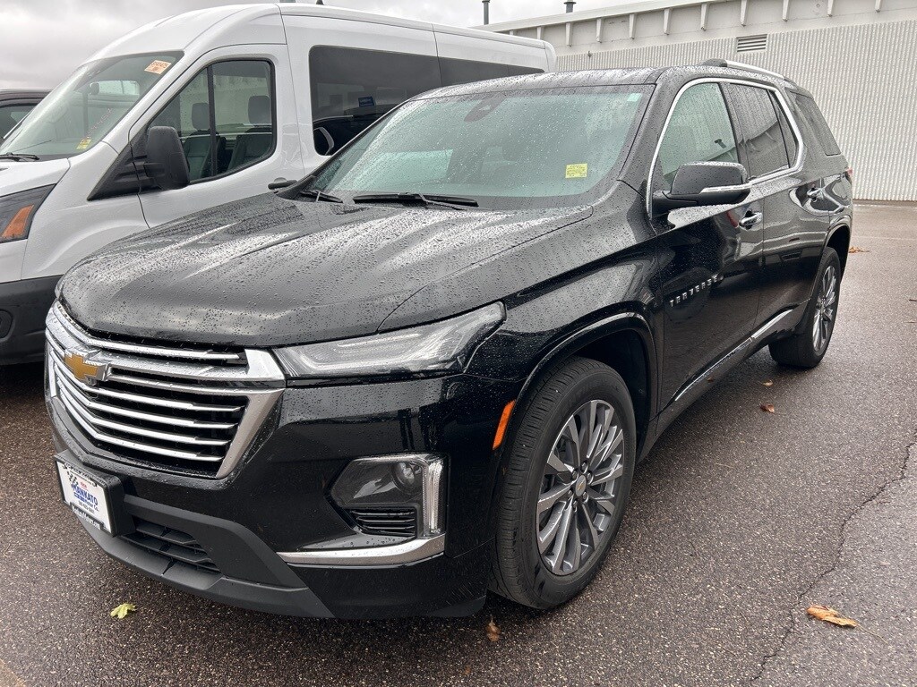 Mosaic Black Metallic 2023 Chevrolet Traverse Premier AWD 9-Speed Automatic 3.6L V6 SIDI VVT Traverse Premier, 4D Sport Utility, 3.6L V6 SIDI VVT, 9-Speed Automatic, AWD, Mosaic Black Metallic, Jet Black w/Perforated Leather-Appointed Seat Trim, Apple CarPlay/Android Auto, Auto High-beam Headlights, Auto-dimming Rear-View mirror, Bose Premium 10-Speaker Audio System Feature, Dual SkyScape 2-Panel Power Sunroof, Front dual zone A/C, Heated 2nd Row Outboard Position Seats, Heated Driver & Front Passenger Seats, Heated rear seats, Memory seat, Navigation System, Not Equipped w/Rear Park Assist (060), Outside temperature display, Power driver seat, Power Liftgate, Power passenger seat, Preferred Equipment Group 1LZ, Radio: Chevrolet Infotainment 3 Plus System w/Navi, Rear air conditioning, SiriusXM w/360L, Ventilated Driver & Front Passenger Seats, Wheels: 20" Metallic Machined-Face Aluminum.