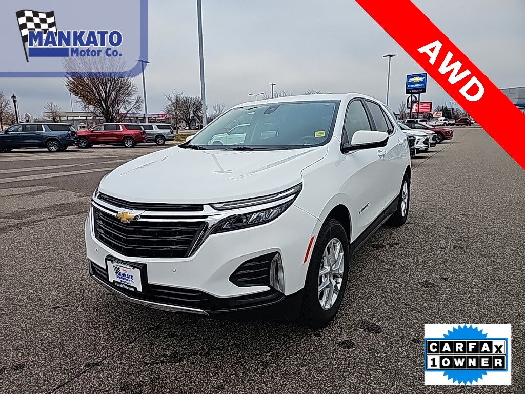 Summit White 2024 Chevrolet Equinox LT AWD 6-Speed Automatic Electronic with Overdrive 1.5L DOHC Equinox LT, 4D Sport Utility, 1.5L DOHC, 6-Speed Automatic Electronic with Overdrive, AWD, Summit White, Jet Black w/Premium Cloth Seat Trim, 17" Aluminum Wheels, 2 Rear USB Charging-Only Ports, 2 USB Ports & Auxiliary Input Jack, 6-Speaker Audio System Feature, AM/FM radio: SiriusXM, Bluetooth® For Phone, Front dual zone A/C, Heated door mirrors, Heated Driver & Front Passenger Seats, Power driver seat, Power Liftgate, Preferred Equipment Group 1LT, Radio: Chevrolet Infotainment 3 System w/AM/FM, SiriusXM.