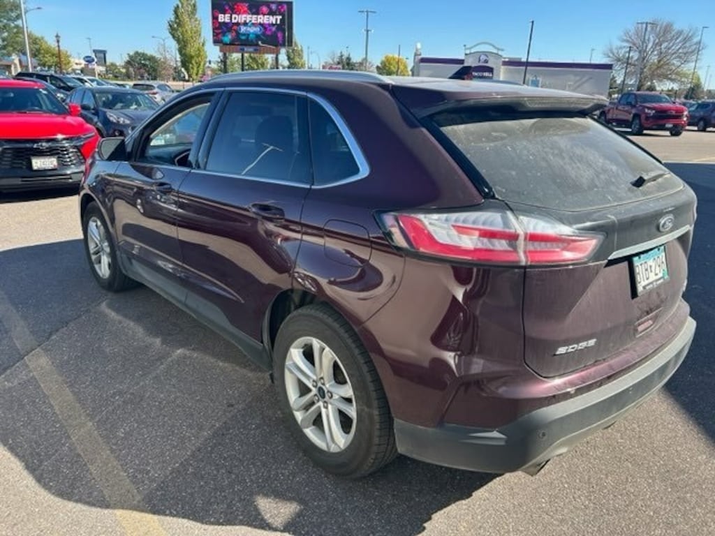Burgundy 2019 Ford Edge SEL AWD 8-Speed Automatic EcoBoost 2.0L I4 GTDi DOHC Turbocharged VCT Edge SEL, 4D Sport Utility, EcoBoost 2.0L I4 GTDi DOHC Turbocharged VCT, 8-Speed Automatic, AWD, Burgundy, Ebony Cloth, 110V/150W AC Power Outlet, 2 Driver Configurable 4.2" Color LCD Displays, ActiveX Seating Material Heated Bucket Seats, Cold Weather Package, Convenience Package, Equipment Group 201A, Foot-Activated Hands-Free Liftgate, Front & Rear Floor Liners, Heated Steering Wheel, LED Signature Daytime Running Lamps, Perimeter Alarm, Premium 9 Speaker Audio System, Remote Start System, Universal Garage Door Opener (UGDO), Windshield Wiper De-Icer, Wireless Charging Pad.