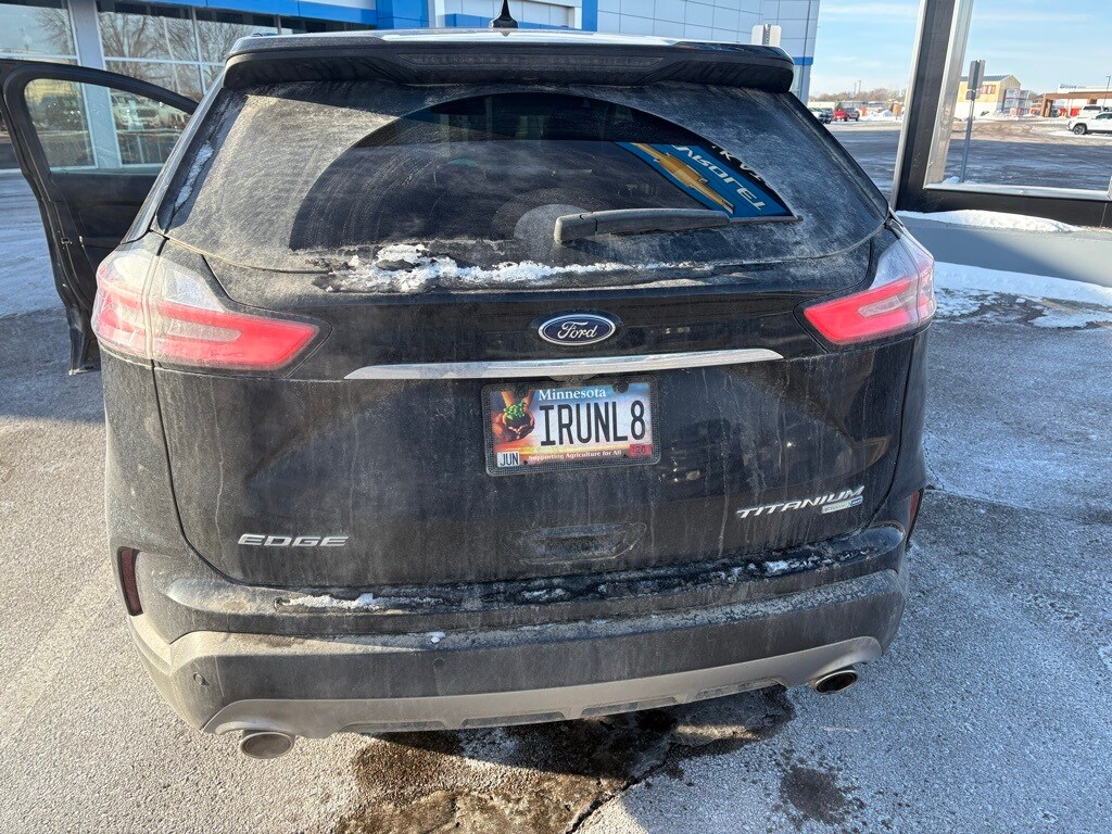 Agate Black 2020 Ford Edge Titanium AWD 8-Speed Automatic EcoBoost 2.0L I4 GTDi DOHC Turbocharged VCT Edge Titanium, 4D Sport Utility, EcoBoost 2.0L I4 GTDi DOHC Turbocharged VCT, 8-Speed Automatic, AWD, Agate Black, Ebony w/Leather-Trimmed Heated/Cooled Sport Bucket Seats, Adaptive Cruise Control w/Stop & Go, Adaptive LED Headlamps, Auto High-beam Headlights, Auto-Dimming Driver's Sideview Mirror, Enhanced Active Park Assist, Equipment Group 301A, Evasive Steering Assist, FordPass Connect, Front 180-Degree Camera w/Split View & Washer, Front dual zone A/C, Garage door transmitter, Heated front seats, Heated Rear Seats, Heated steering wheel, Lane Centering, Leather-Trimmed Heated/Cooled Sport Bucket Seats, Memory seat, Panoramic Vista Roof, Power driver seat, Power Liftgate, Power passenger seat, Radio: B&O Sound System by Bang & Olufsen, Rain sensing wipers, SiriusXM Radio, SiriusXM Traffic & Travel Link, SYNC 3 Communications & Entertainment System, Voice-Activated Touchscreen Navigation System, Wheels: 19" Luster Nickel-Painted Aluminum.