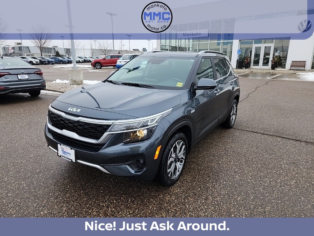 Gravity Gray 2022 Kia Seltos EX AWD CVT 2.0L I4 MPI Seltos EX, 4D Sport Utility, 2.0L I4 MPI, CVT, AWD, Gravity Gray, Black w/Cloth & Sofino Premium Leatherette Seat Trim, Apple CarPlay & Android Auto, Automatic temperature control, Heated front seats, Navigation System, Power driver seat, Power moonroof, Radio: AM/FM/MP3 Display Audio w/Navigation, Wheels: 17" Alloy w/Machined Finish.