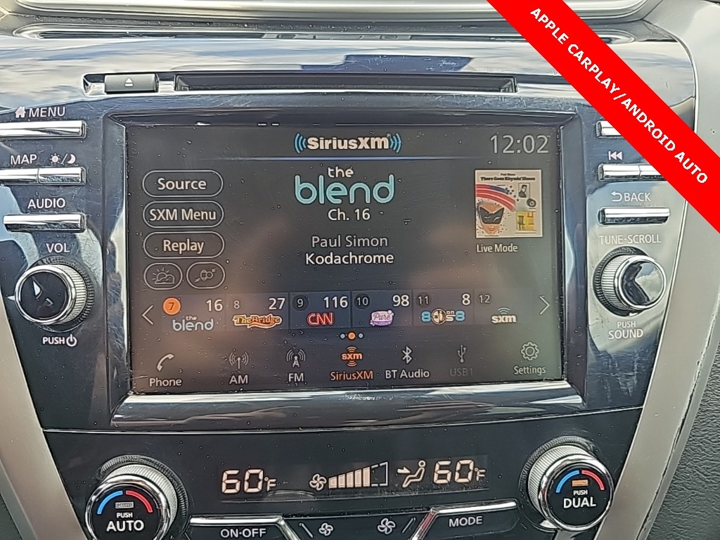 Super Black Metallic 2020 Nissan Murano Platinum AWD CVT with Xtronic 3.5L V6 DOHC 24V Murano Platinum, 4D Sport Utility, 3.5L V6 DOHC 24V, CVT with Xtronic, AWD, Super Black Metallic, Graphite w/Semi-Aniline Leather-Appointed Seat Trim, AM/FM/CD/MP3/WMA Audio System, Auto High-beam Headlights, Automatic temperature control, Blind Spot Warning, CD player, Exterior Parking Camera Rear, Garage door transmitter: HomeLink, Heated door mirrors, Heated front seats, Heated rear seats, Heated steering wheel, Memory seat, Navigation system: NissanConnect Navigation, NissanConnect featuring Apple CarPlay and Android Auto, NissanConnect Services Powered By SiriusXM, Power Liftgate, Power moonroof, Power passenger seat, Ventilated front seats.