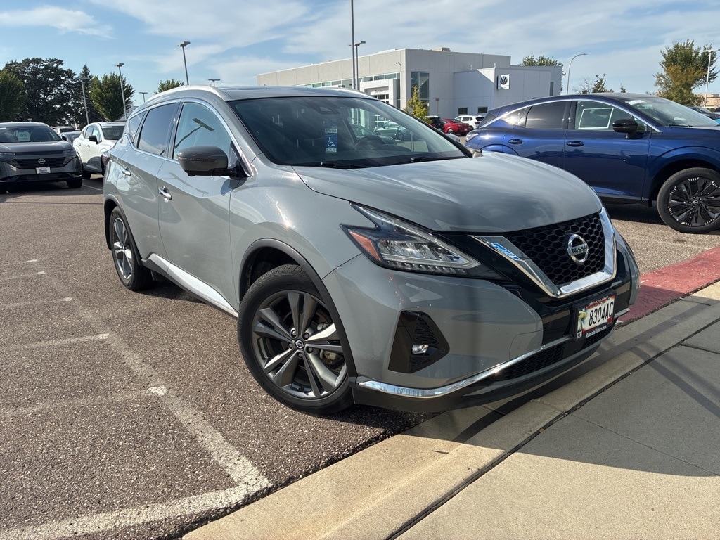 Boulder Gray Pearl 2021 Nissan Murano Platinum AWD CVT with Xtronic 3.5L V6 DOHC 24V Murano Platinum, 4D Sport Utility, 3.5L V6 DOHC 24V, CVT with Xtronic, AWD, Boulder Gray Pearl, Graphite w/Semi-Aniline Leather-Appointed Seat Trim, AM/FM/CD/MP3/WMA Audio System, Auto High-beam Headlights, Auto tilt-away steering wheel, Auto-dimming Rear-View mirror, Automatic temperature control, Blind Spot Warning, Exterior Parking Camera Rear, Front dual zone A/C, Garage door transmitter: HomeLink, Heated & Ventilated Front Bucket Seats, Heated door mirrors, Heated rear seats, Heated steering wheel, Memory seat, Navigation system: NissanConnect Navigation, NissanConnect featuring Apple CarPlay and Android Auto, NissanConnect Services Powered By SiriusXM, Power door mirrors, Power Liftgate, Power moonroof, Power passenger seat, Ventilated front seats, Wheels: 20" Dark Hyper Silver.