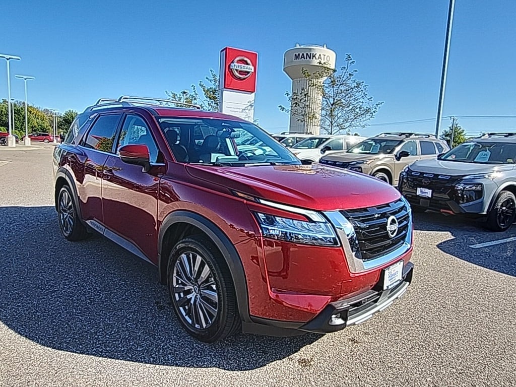 Scarlet Ember Tintcoat 2022 Nissan Pathfinder SL 4WD 9-Speed Automatic V6 Pathfinder SL, 4D Sport Utility, V6, 9-Speed Automatic, 4WD, Scarlet Ember Tintcoat, Charcoal w/Leather Seating Surfaces, 20" Alloy Wheels, 2nd-Row Captain Chairs, 2nd-Row Removable Center Console, Auto High-beam Headlights, Auto-dimming Rear-View mirror, Bose Premium Audio System, Exterior Parking Camera Rear, Front dual zone A/C, Garage door transmitter: HomeLink, Heated front seats, Heated Rear Seats, Navigation system: NissanConnect Navigation, NissanConnect w/Navigation & Services, Panoramic Moonroof, Power Liftgate, Power passenger seat, Rear air conditioning, SL Premium Package, Tow Hitch Receiver & Harness, Wireless Charging Pad.