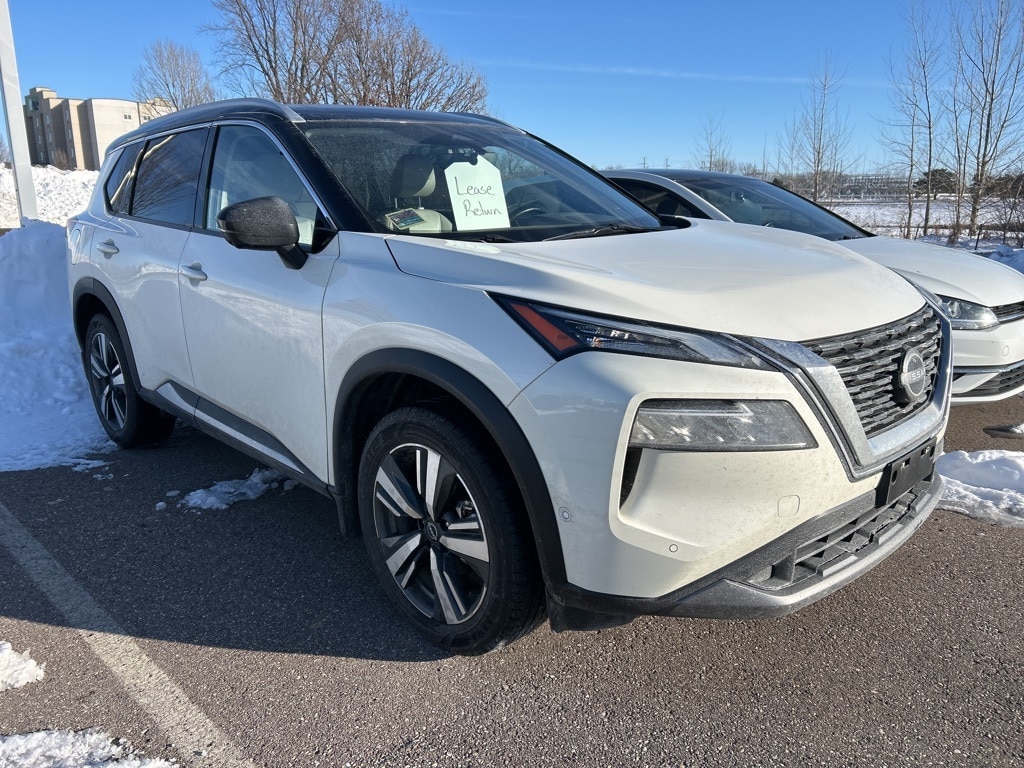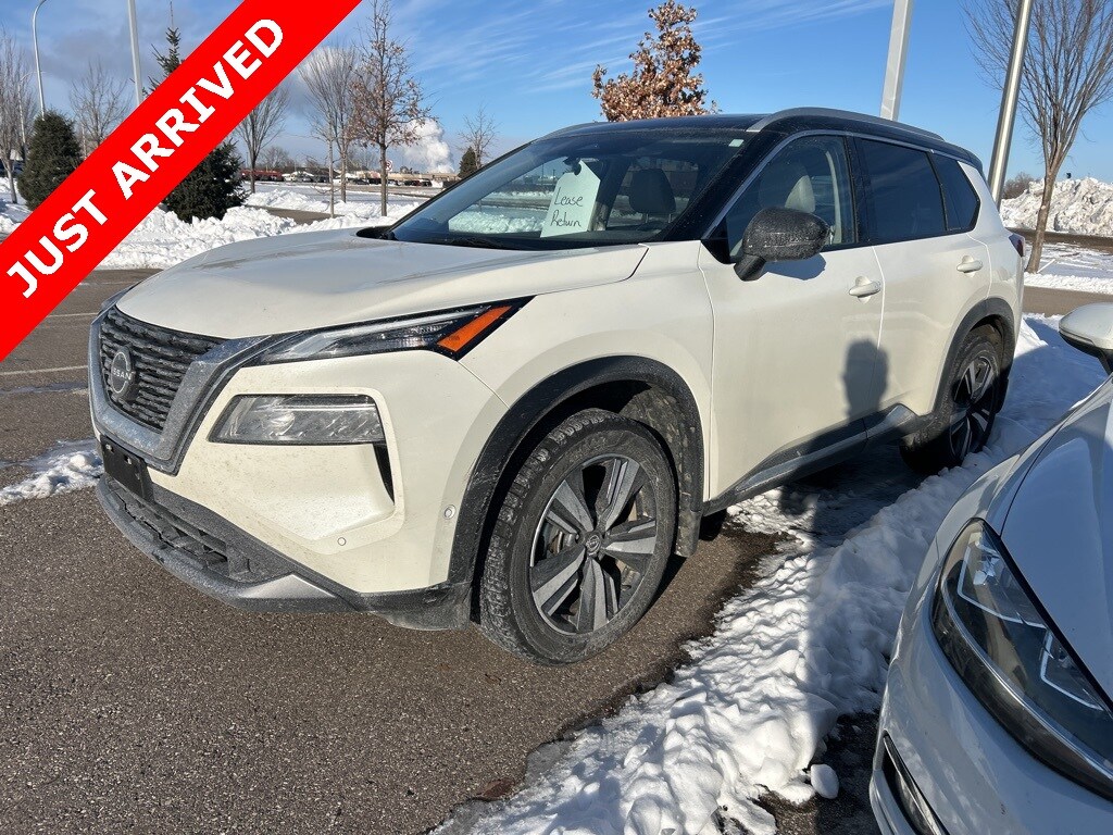 Pearl White Tricoat/Super Black 2023 Nissan Rogue SL AWD CVT with Xtronic 1.5L I3 Turbocharged DOHC 12V LEV3-ULEV50 201hp Rogue SL, 4D Sport Utility, 1.5L I3 Turbocharged DOHC 12V LEV3-ULEV50 201hp, CVT with Xtronic, AWD, Pearl White Tricoat/Super Black, Light Gray w/Leather-Appointed Seat Trim, 19" Aluminum Alloy Wheels, Auto High-beam Headlights, Bose Premium Audio System, Front, Side & Rear Sonar, Heated front seats, Memory seat, Motion Activated Power Liftgate, NissanConnect featuring Apple CarPlay and Android Auto, Power Liftgate, Power moonroof, Power passenger seat, ProPILOT Assist w/Navi-link, Radio: AM/FM NissanConnect w/Navigation, Rear Door Sunshades, Rear Parking Sensors, SL Premium Package, Traffic Sign Recognition, Tri-Zone HVAC.
